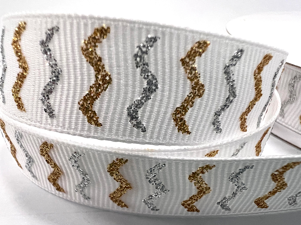 Tính năng:Sáng bóng, lấp lánh và tuyệt đẹp. Với kỹ thuật in đặc biệt giúp bột kim tuyến bám chắc vào ruy băng.