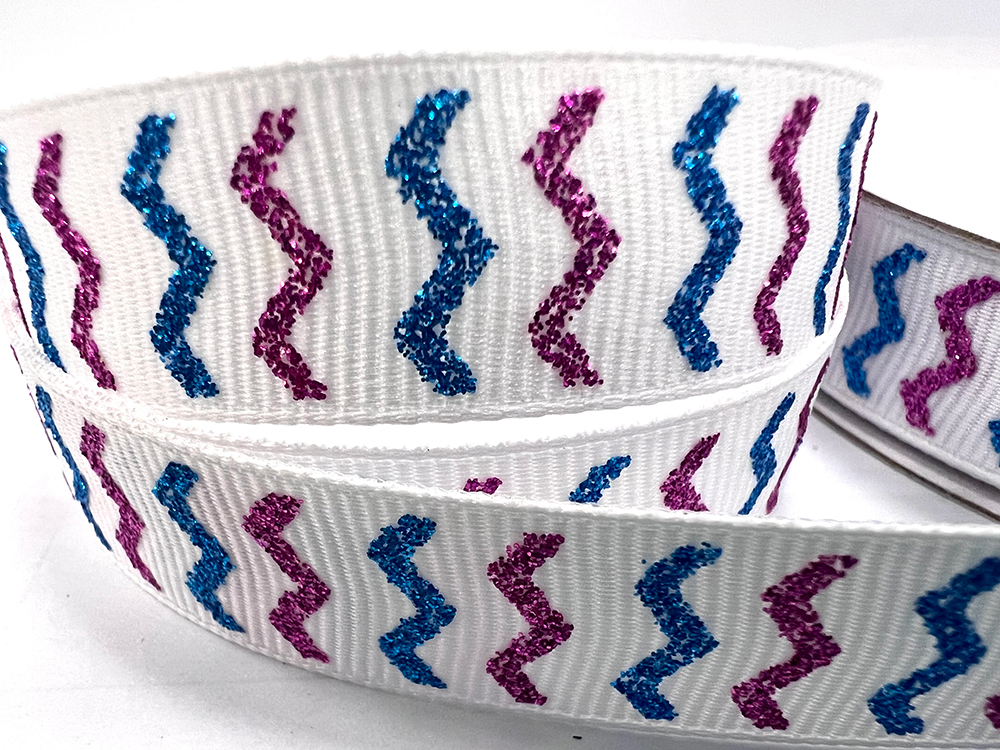 Tính năng:Sáng bóng, lấp lánh và tuyệt đẹp. Với kỹ thuật in đặc biệt giúp bột kim tuyến bám chắc vào ruy băng.