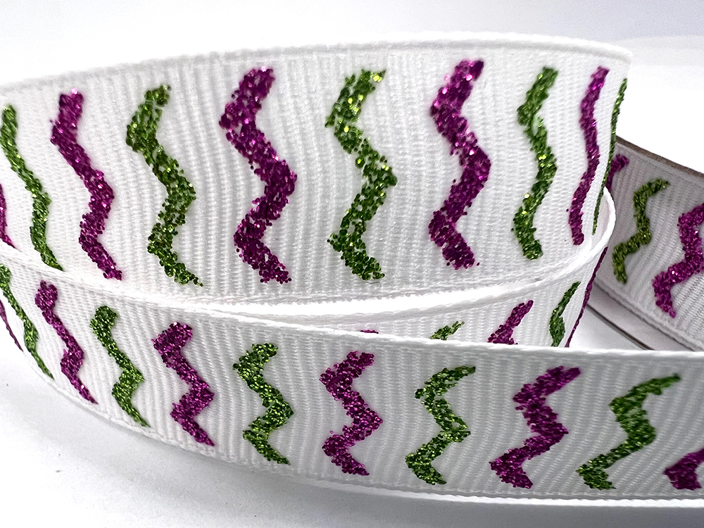 Tính năng:Sáng bóng, lấp lánh và tuyệt đẹp. Với kỹ thuật in đặc biệt giúp bột kim tuyến bám chắc vào ruy băng.